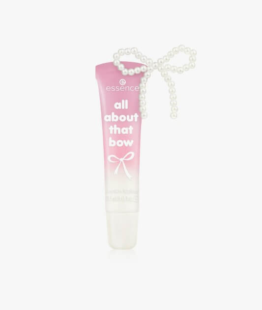Limited edition lip gloss από τη συλλογή All About That Bow της essence που χαρίζει έντονη λάμψη και διακριτικό ροζ shimmer στα χείλη.