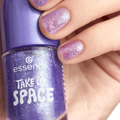 Το απολεπιστικό νυχιών με τζελ essence 34 TAKE UP SPACE σε ημιδιαφανή βιολετί απόχρωση γκλίτερ προσφέρει μια έκρηξη γυαλιστερής τελειότητας σε λαμπερό αποτέλεσμα.