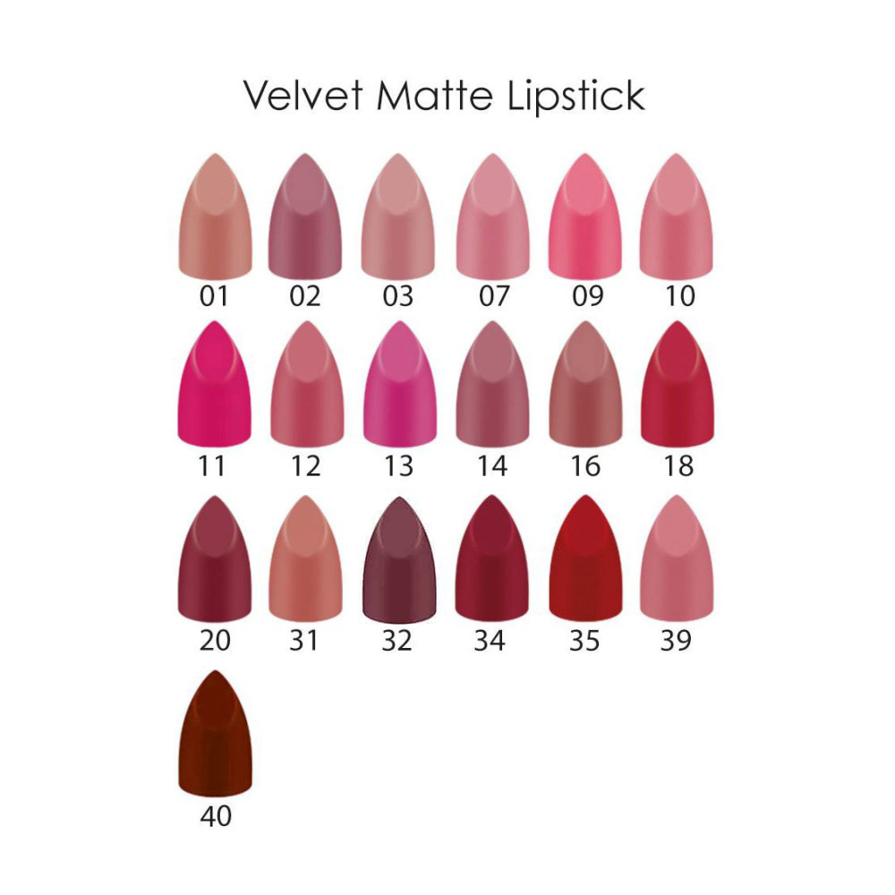 Θρέφει και ενυδατώνει τα χείλη σας, χάρη στη βιταμίνη Ε και άλλους ενυδατικούς παράγοντες. Επιπλέον, η νέα του σύνθεση χαρίζει ακόμη πιο έντονα χρώματα και μεγαλύτερη διάρκεια.Από το έντονο κόκκινο εώς το nude και το ζωηρό μωβ, το νέο κραγιόν Velvet Matte είναι διαθέσιμο σε 39 μοντέρνους χρωματισμούς.Επιπλέον, η νέα του σύνθεση χαρίζει ακόμη πιο έντονα χρώματα και μεγαλύτερη διάρκεια.Η σύνθεση τους είναι paraben free & gluten free και είναι δερματολογικά ελεγμένο.