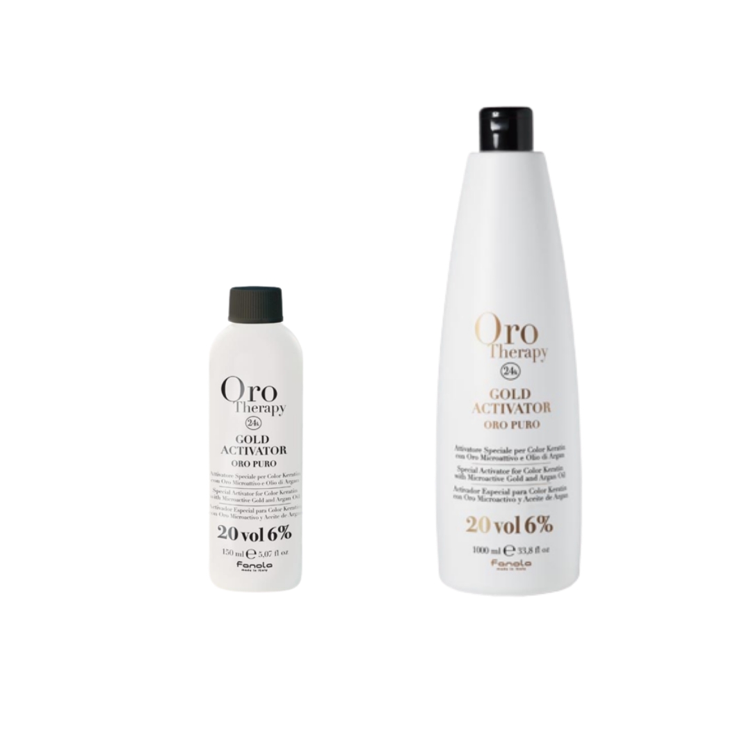 Οξυζενέ για βαφή χωρίς αμμωνία εμπλουτισμένο με λάδι αργκάν, κερατίνη και μικροσφαιρίδια χρυσού. Οξειδωτική κρεμά κατάλληλη για ανάμειξη μόνο με τις βαφές χωρίς αμμωνία Oro Therapy. Έχει κρεμώδη υφή. Η δοσολογία με τις βαφές Oro color είναι 1 πρός 1,5 (οξυζενέ) σε όλα τα χρώματα και 1 προς 2 (οξυζενέ) στα ξανθιστικά χρώματα καθώς και στα ρεφλέ. Extra tips: Για να έχετε ένα άριστο χρωματικό αποτέλεσμα το μυστικό είναι η ακριβής δοσολογία. Γι’αυτό είναι απαραίτητο να μετράτε πάντα την δοσολογία της βαφής με την οξειδωτική κρεμά. Έτσι δεν θα έχετε πότε απόκλιση στο χρώμα καθώς και την κάλυψη των λευκών μαλλιών. Μπορείτε να μετράτε την δοσολογία με έναν απλό δοσομετρητή η με μια ζυγαριά ακριβείας .