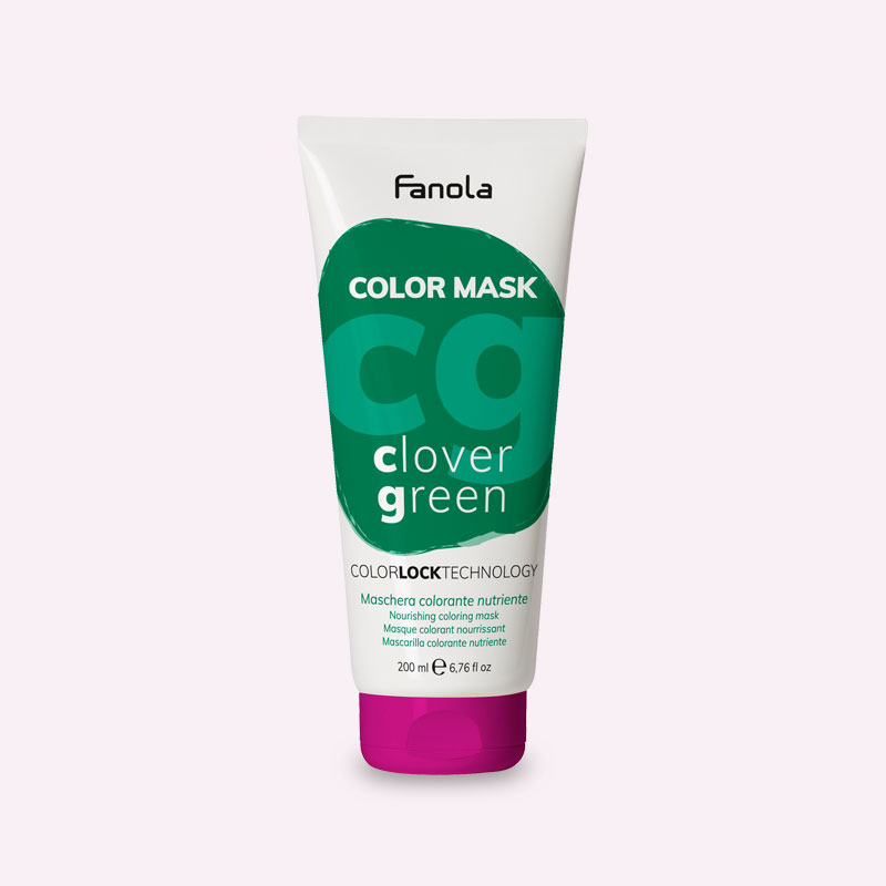 Περιγραφή Η μάσκα με χρώμα Πράσινο - Fanola Color Mask Clover Green είναι ημιμόνιμη και δίνει χρώμα στα μαλλιά μόνο σε 2 λεπτά. Θρέφει και ενυδατώνει το τριχωτό χάρη στο λάδι αβοκάντο που περιέχει αφήνοντας τα μαλλιά μεταξένια, απαλά και λαμπερά. Το έλαιο Αβοκάντο θρέφει τις ρίζες και συμβάλλει έντονα στην ανάπτυξη νέων τριχών, προστατεύει τα μαλλιά από την ακτινοβολία του ήλιου, αναδομεί την εύθραυστη τρίχα και χαρίζει απίθανη λάμψη στα άτονα θαμπά μαλλιά. Είναι κατάλληλη για χρήση σε φυσικά, βαμμένα, ντεκαπαρισμένα ή σε μαλλιά με ανταύγειες. Το χρώμα της δεν ξεθωριάζει χάρη στην μοναδική «τεχνολογία κλειδώματος χρώματος» που παρατείνει την διάρκεια της μάσκας. Αποχρώσεις: copper flow, red passion, silky purple, total black, ocean blue, pink sugar, clover green, sensual chocolate, golden aura