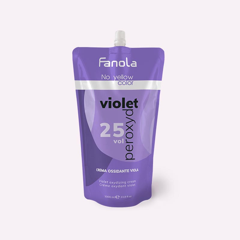 Οξυζενέ κρεμώδες βιολέ no yellow color. Ένα καινοτόμο οξυζενέ με μωβ πιγκμέντα πατενταρισμένο από την Fanola professional. Εξουδετερώνει τα κίτρινα ανεπιθύμητα σημεία ακόμη από το μπολ βαφής. Ιδανικό για χρήση με ντεκαπάζ fanola αλλά και τις βαφές μαλλιών