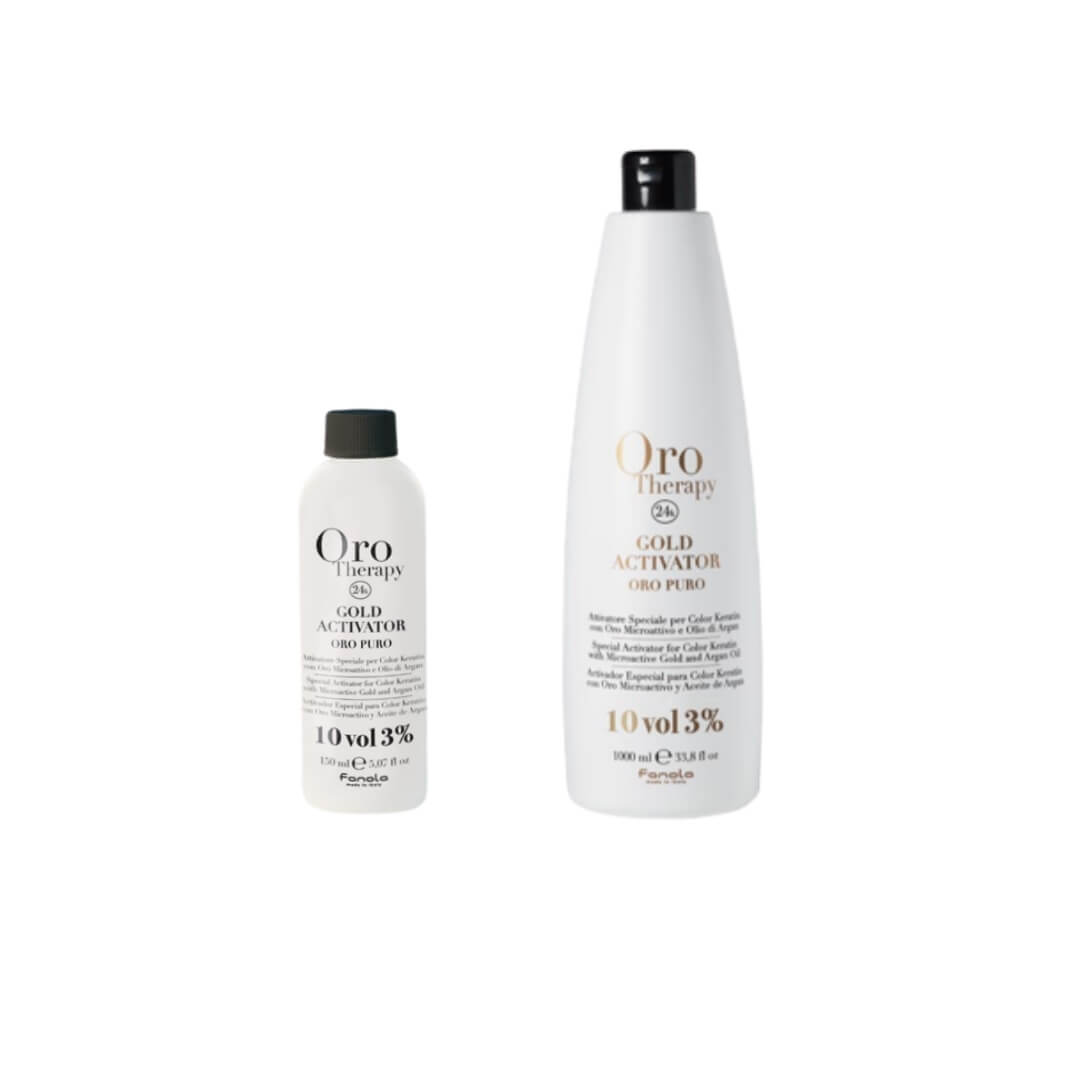 Οξυζενέ για βαφή χωρίς αμμωνία εμπλουτισμένο με λάδι αργκάν, κερατίνη και μικροσφαιρίδια χρυσού. Οξειδωτική κρεμά κατάλληλη για ανάμειξη μόνο με τις βαφές χωρίς αμμωνία Oro Therapy. Έχει κρεμώδη υφή. Η δοσολογία με τις βαφές Oro color είναι 1 πρός 1,5 (οξυζενέ) σε όλα τα χρώματα και 1 προς 2 (οξυζενέ) στα ξανθιστικά χρώματα καθώς και στα ρεφλέ. Extra tips: Για να έχετε ένα άριστο χρωματικό αποτέλεσμα το μυστικό είναι η ακριβής δοσολογία. Γι’αυτό είναι απαραίτητο να μετράτε πάντα την δοσολογία της βαφής με την οξειδωτική κρεμά. Έτσι δεν θα έχετε πότε απόκλιση στο χρώμα καθώς και την κάλυψη των λευκών μαλλιών. Μπορείτε να μετράτε την δοσολογία με έναν απλό δοσομετρητή η με μια ζυγαριά ακριβείας .