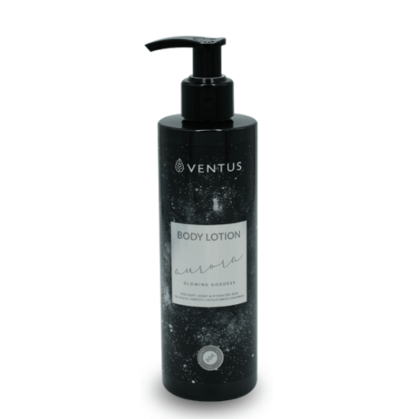 Λοσιόν σώματος Aurora με χρυσόσκονη που ενυδατώνει και θρέφει την επιδερμίδα σε βάθος χωρίς να αφήνει ίχνος λιπαρότητας.