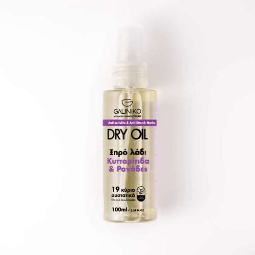 Ξηρό λάδι σώματος με 19 κύρια συστατικά φυσικής προέλευσης, όπως έλαια, εκχυλίσματα και βιταμίνες που συμβάλλουν στην μείωση της κυτταρίτιδας και της όψης φλοιού πορτοκαλιού, ενώ ενισχύουν την πρόληψη και την αντιμετώπιση των ραγάδων, χωρίς να αφήνει λιπαρότητα.